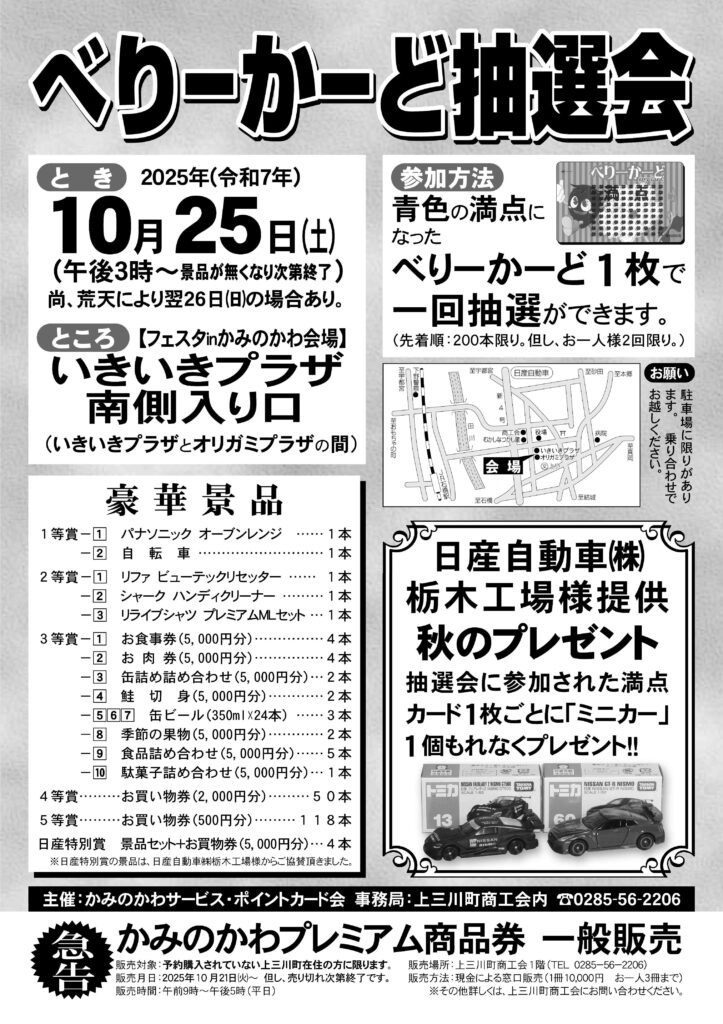 フェスタinかみのかわの開催にあわせまして、べりーかーど抽選会を行います。